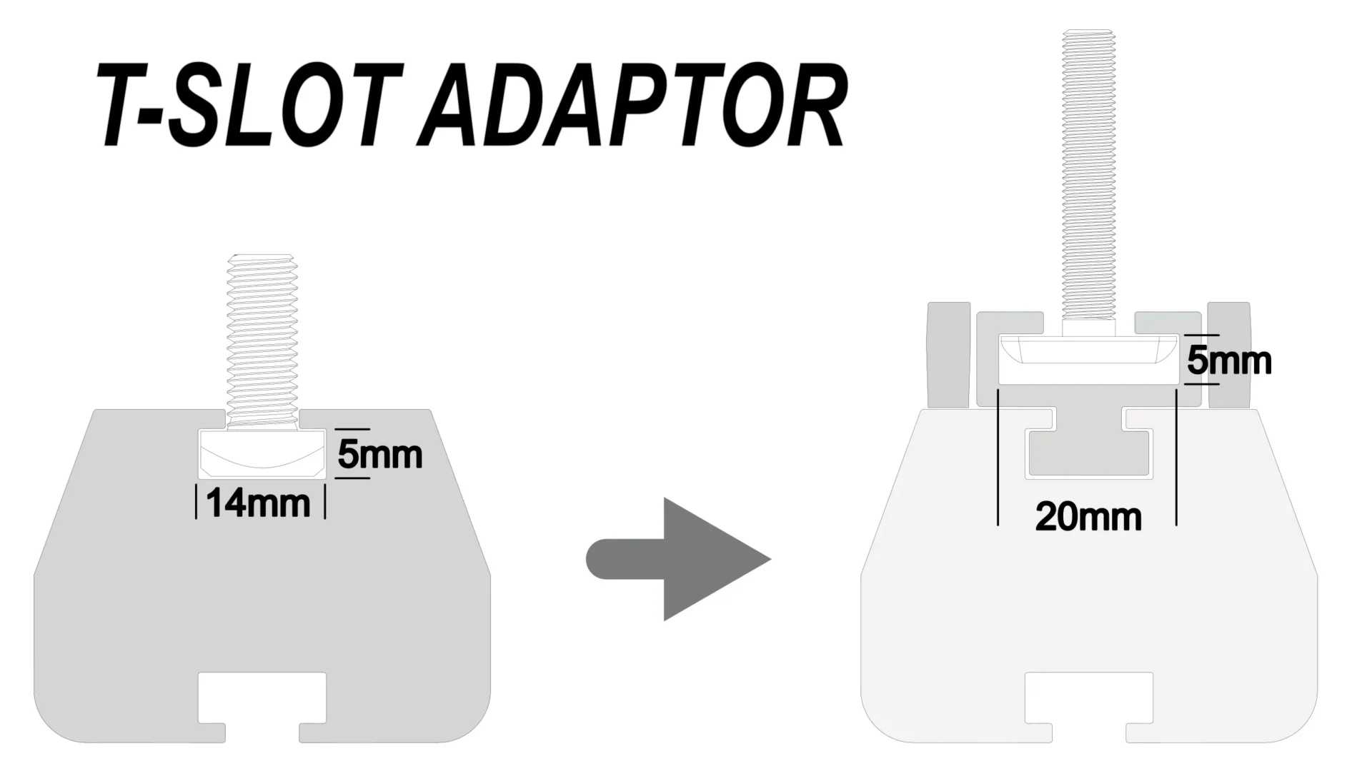 Die Adapter sind für T-Nuten mit einer Breite von 16 mm bis 20 mm und einer Stärke von bis zu 5 mm ausgelegt. Damit decken sie die gängigsten Marktstandards ab und gewährleisten einen sicheren sowie stabilen Sitz.