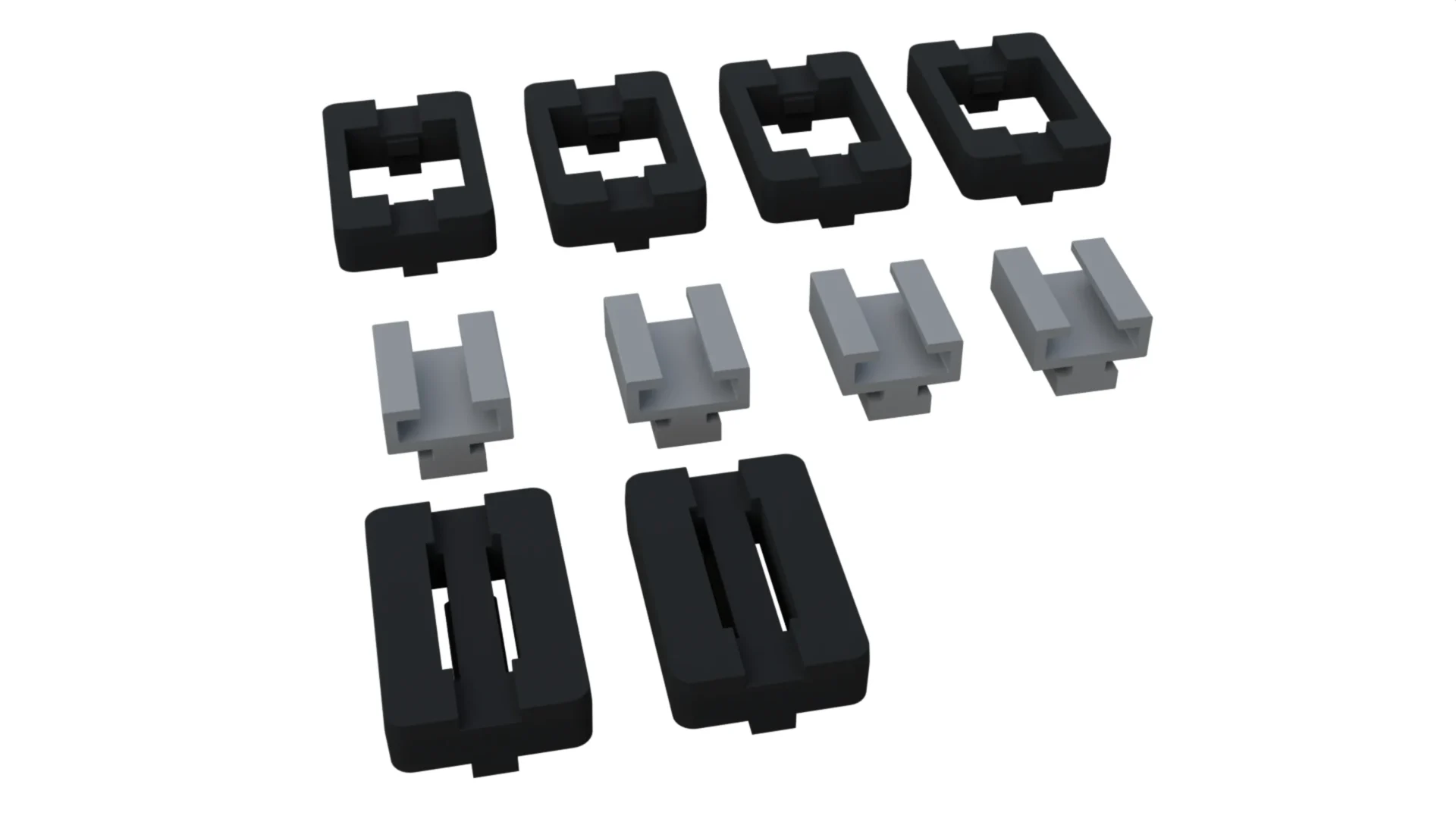 Die Adapter ermöglichen die Anpassung der T-Nuten von Tessera Bar+ / Tower+ und gewährleisten eine nahtlose Kompatibilität mit einer Vielzahl von Zubehörteilen von Drittanbietern, darunter: